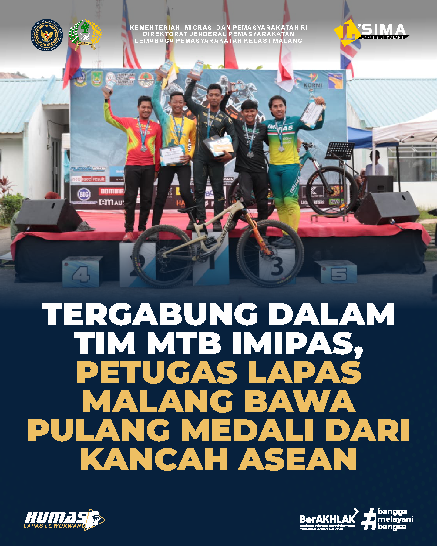 Batam – Petugas Lapas Kelas I Malang, Dhewangga Luhur, berhasil mengharumkan nama Kementerian Imigrasi dan Pemasyarakatan (Kemenimipas) melalui ajang ASEAN Master Downhill 2025 yang digelar di Mangsang Bike Park, Batam pada 11 s.d. 12 Oktober 2025 (12/10). Dhewangga yang tergabung dalam Tim MTB Imipas turun di kelas Master A dan berhasil meraih posisi Juara 5 (Podium 5) di antara para pembalap dari berbagai negara ASEAN. Prestasi ini menjadi bukti nyata bahwa petugas pemasyarakatan juga memiliki potensi besar dalam bidang olahraga ekstrem dan mampu bersaing di level internasional.