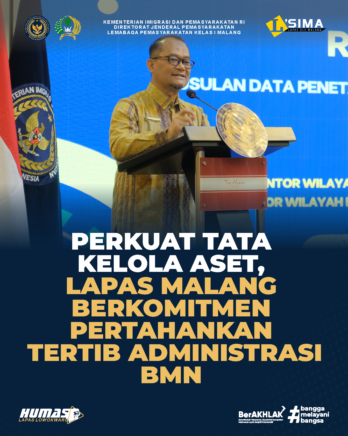 MALANG – Lapas Kelas I Malang menunjukkan komitmen dalam mendukung pengelolaan aset negara yang transparan dan akuntabel melalui partisipasi operator SIMAN dalam kegiatan Rekonsiliasi Usulan Data Penetapan Status Penggunaan (PSP) Barang Milik Negara (BMN) se-Jawa Timur, Rabu (29/10). Kegiatan yang digelar di Jenggala Hall, Alana Hotel Malang ini diselenggarakan oleh Kantor Wilayah Direktorat Jenderal Imigrasi Jawa Timur dan diikuti 125 operator BMN dari seluruh satuan kerja Kemenimipas. Kegiatan dibuka oleh Darori, Kepala Bagian Tata Usaha dan Umum Kanwil Imigrasi Jawa Timur mewakili Kepala Kantor Wilayah.