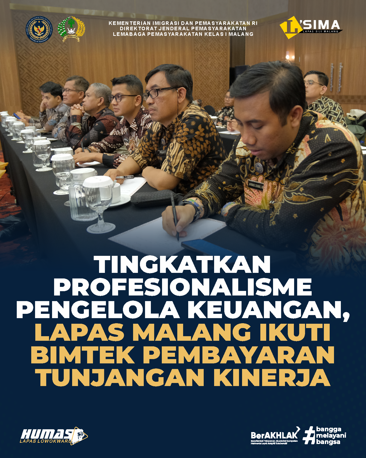 Malang – Dalam rangka memperkuat sistem pengelolaan keuangan berbasis kinerja, Lapas Kelas I Malang turut berpartisipasi dalam kegiatan Bimbingan Teknis Tata Cara Pembayaran Tunjangan Kinerja (Tunkir) yang diselenggarakan oleh Kantor Wilayah Direktorat Jenderal Imigrasi dan Pemasyarakatan Jawa Timur, Kamis (30/10). Kegiatan yang berlangsung di Hotel Alana Malang ini diikuti oleh pejabat serta pengelola keuangan dari seluruh satuan kerja Kemenimipas Jawa Timur, termasuk operator pembayaran Tunkir Lapas Malang bersama Kepala Seksi Kepegawaian mewakili Kepala Bagian Tata Usaha.