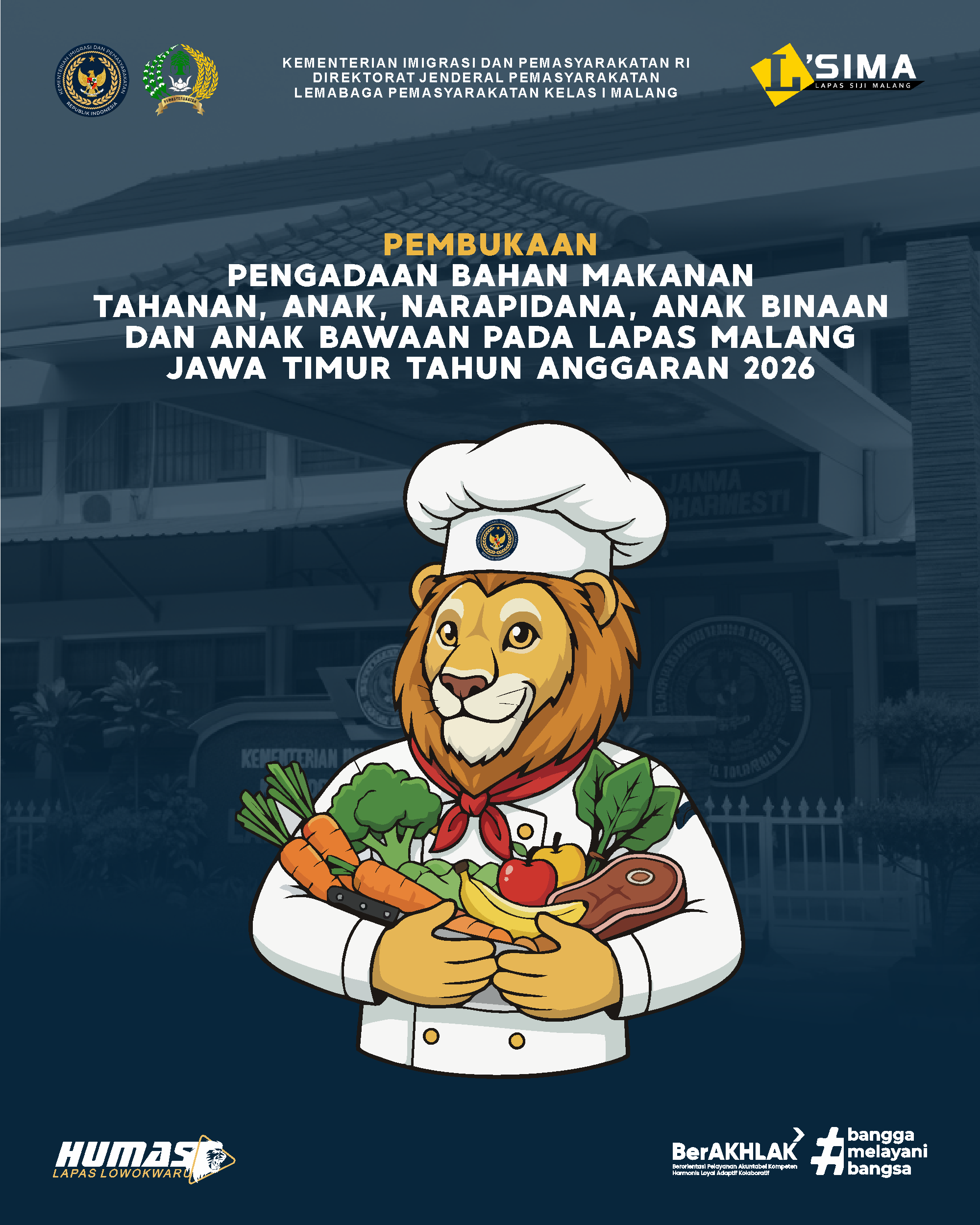 Demikian pengumuman ini disampaikan, atas perhatian dan kerjasamanya disampaikan terimakasih. Hormat kami, PPK dan Tim Pendukung Pengadaan Bahan Makanan Tahanan, Anak, Narapidana, Anak Binaan Dan Anak Bawaan Pada Lembaga Pemasyarakatan Kelas I Malang – Jawa Timur Tahun Anggaran 2026