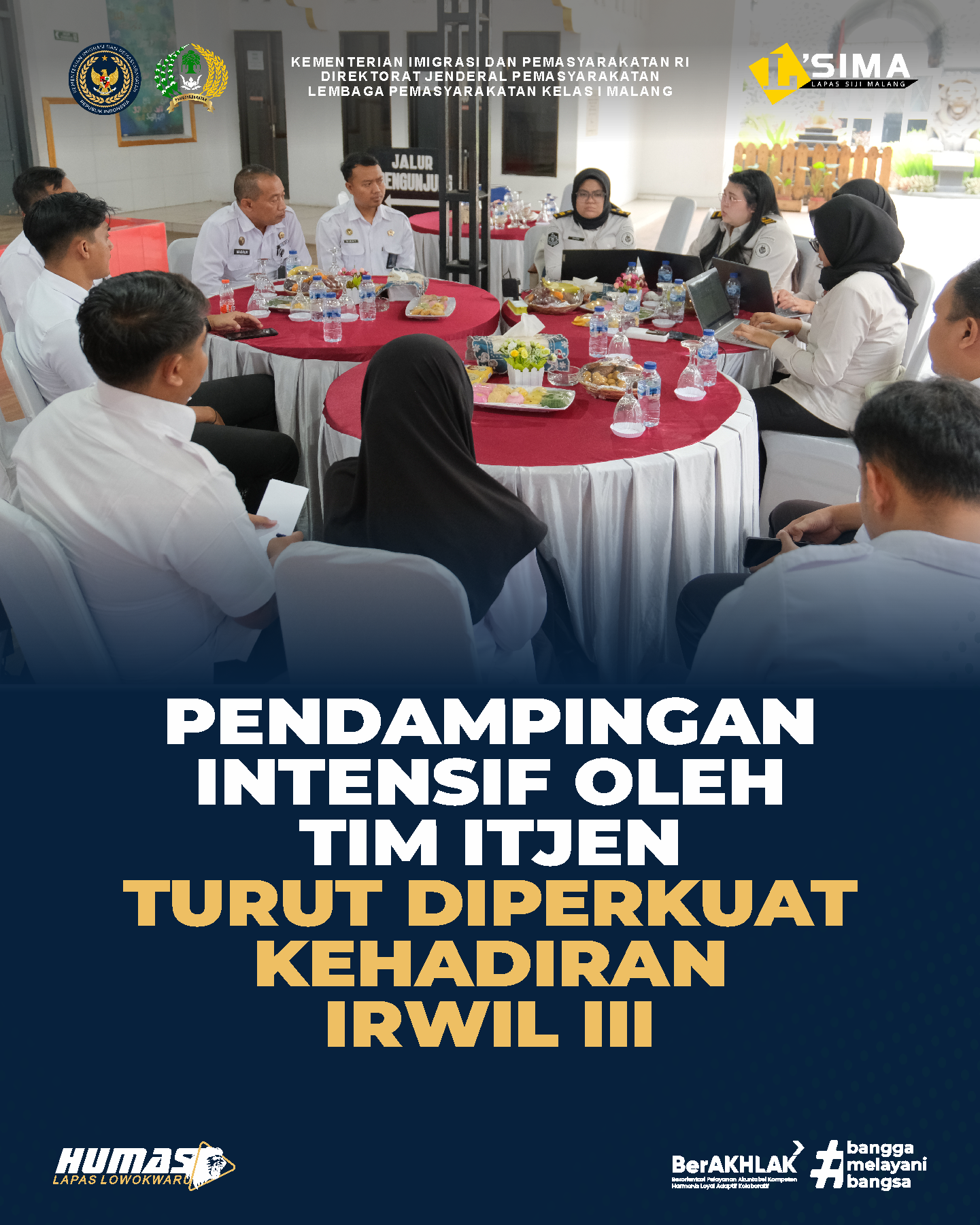 Pendampingan turut membahas sinkronisasi data aset melalui aplikasi SIMAN dengan hasil opname fisik BMN di lapangan. Pemeriksaan fisik BMN ditekankan agar fokus pada kondisi barang dan kesesuaian data, guna meminimalkan potensi ketidaksesuaian. Apabila ditemukan barang yang hilang atau tidak ditemukan, satuan kerja diminta segera melakukan koordinasi dengan Kantor Wilayah. Di tengah pelaksanaan pendampingan, Inspektur Wilayah III Inspektorat Jenderal Kemenimipas, Hendro Tri Prasetyo, turut hadir dan memberikan penguatan. Kehadiran beliau menjadi dorongan bagi seluruh jajaran agar memanfaatkan pendampingan ini secara optimal dalam rangka meningkatkan kualitas tata kelola keuangan dan pengelolaan BMN di Lapas Malang.