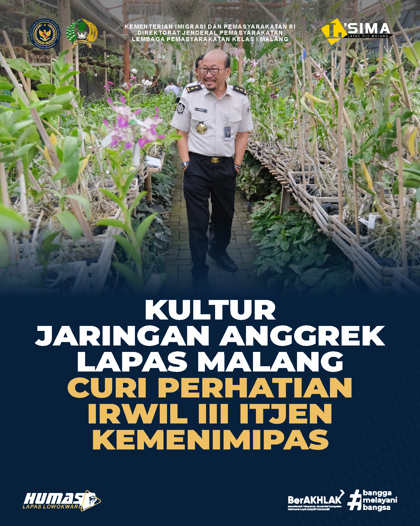 Malang – Dari rangkaian kegiatan pembinaan kemandirian yang ditinjau(29/01), kultur jaringan anggrek menjadi salah satu program yang paling menarik perhatian Inspektur Wilayah III Inspektorat Jenderal Kemenimipas, Hendro Tri Prasetyo. Menurut beliau, kegiatan pembinaan anggrek yang dimiliki Lapas Kelas I Malang tergolong cukup langka dan tidak banyak ditemukan di lembaga pemasyarakatan lain. Budidaya hingga pengembangan kultur jaringan anggrek diketahui telah berjalan sejak lama dan menjadi salah satu program unggulan pembinaan kemandirian. Tidak mengherankan jika anggrek hasil pembinaan Lapas Malang pernah memborong berbagai penghargaan pada ajang tanaman hias nasional, FLOII Expo 2025 di Jakarta, tahun lalu. “Mantap! Harus dilanjutkan dan dikembangkan lagi,” ujar beliau.