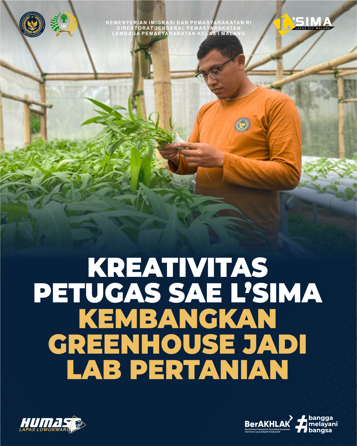 Malang - Petugas Sarana Asimilasi dan Edukasi (SAE) Lapas Kelas I Malang, Eko, memanfaatkan fasilitas greenhouse untuk kegiatan pertanian yang produktif dan edukatif. Greenhouse tersebut digunakan sebagai media budidaya tanaman melon dengan sistem perawatan yang terencana dan berkelanjutan. Proses penanaman dilakukan mulai dari persiapan media tanam, pemilihan bibit unggul, hingga perawatan rutin. Pengendalian hama dan pemantauan pertumbuhan tanaman dilakukan secara berkala untuk menjaga kualitas tanaman. Kegiatan ini menjadi bagian dari optimalisasi sarana pembinaan di lingkungan Lapas Kelas I Malang.